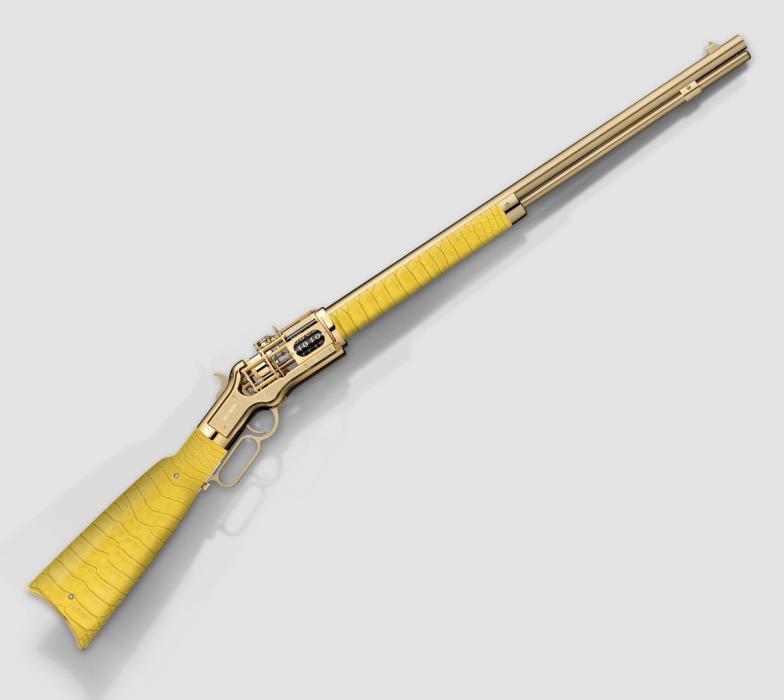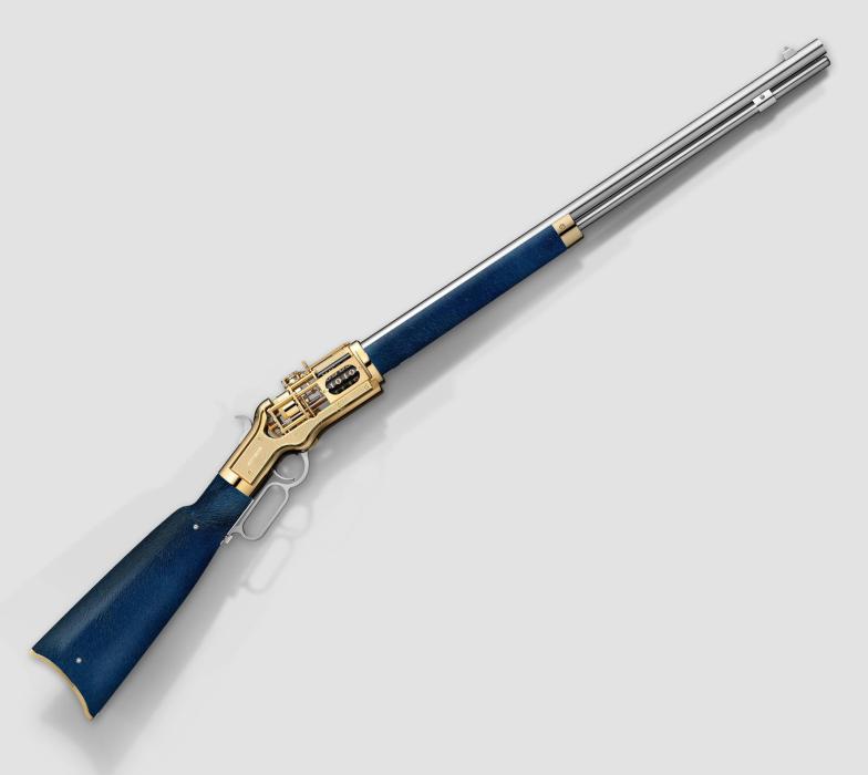 "Bolting a clock to a gun was never an option, so rethinking the original rifle's ingenious lever action mechanism as a main component of the clock calibre seemed like an irresistible challenge. The result is a work of engineering that transcends its function into a work of art, true to our DNA" : L'Epée 1839 captures this defining movement of the hand as it loads the round and prepares the gun for firing : by having the clock mechanism wound - 'loaded' - in exactly the same way. By actioning the lever 15 times, as for the 15 bullets the 1866 Winchester magazin - the mechanism is fully wound for a 8-day power reserve.